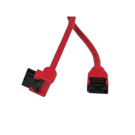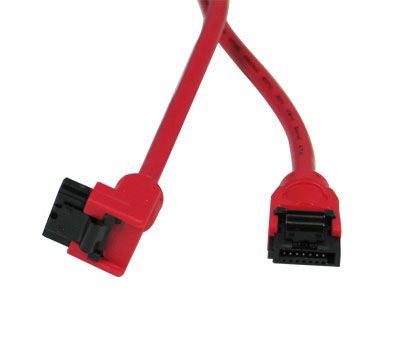 Serial ATA Cables with durable rubber sleeving, with latching metal connector to securely mate the connections.