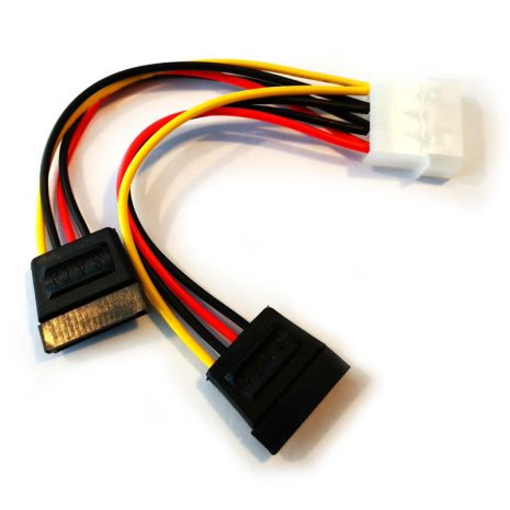 Converts a 4pin Molex plug to 2 x Serial ATA Hard Disk power connections.