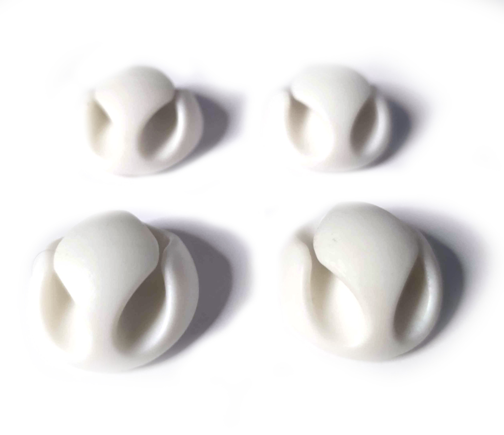 The desk tidy cable holders have one or two ports/channels to organise cables. They have a self-adhesive bottom that will stick firmly to most surfaces but at the same time is easy to remove. Each channel will hold either a large cable (like a power cable or monitor cable) or a few thin cables (like keyboard and mice cables)