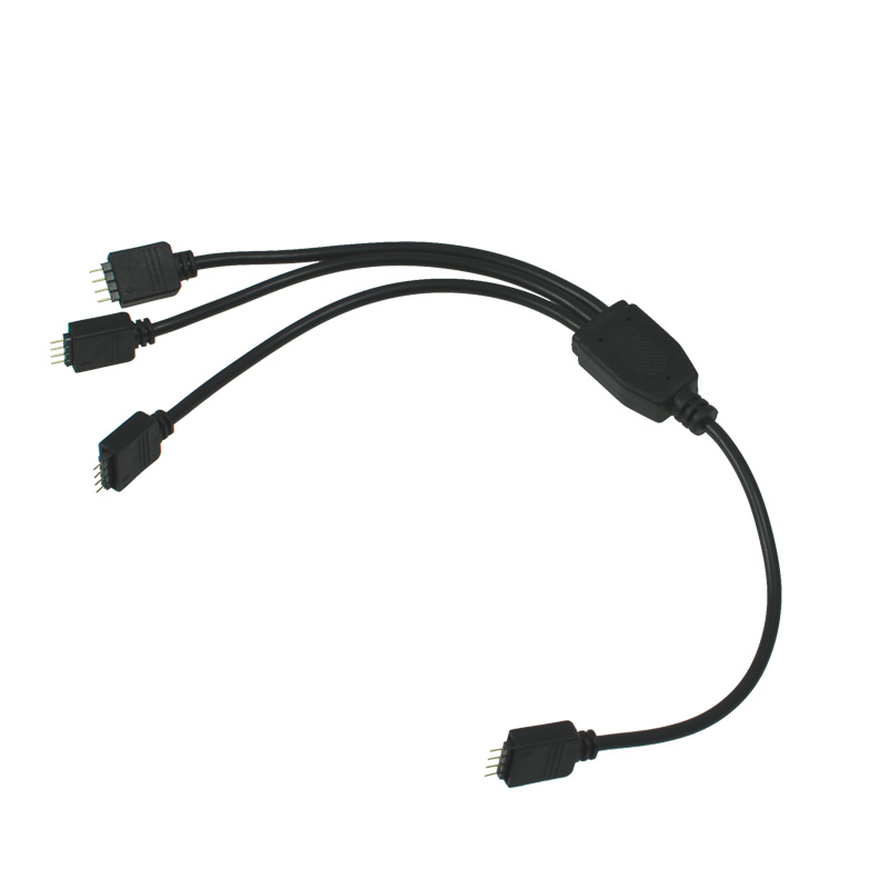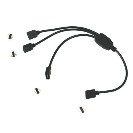 Splitter cable is female on both ends but male to male pins are included for versatility and supporting all RGB devices.