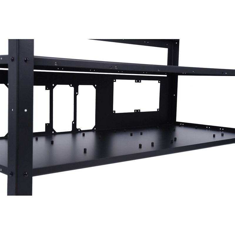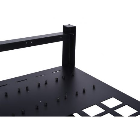 Up to 12 graphics cards can be installed to mine Bitcoin, Ethereum or other crypto-currency. All of the GPUs can be installed in the upper section of the Mining Rig 12. In the lower part of the case, up to 2 Mining motherboards can be installed and to make sure there is adequate power, the Alphacool Mining Rig 12 provides space for up to 4 power supplies.