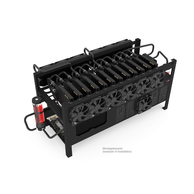 The Alphacool Mining Rig 12 provides you with a whole host of features that combine to create an ideal solution for mining Bitcoin, Ethereum, Zcash, Monero or any other currency you would like to mine.