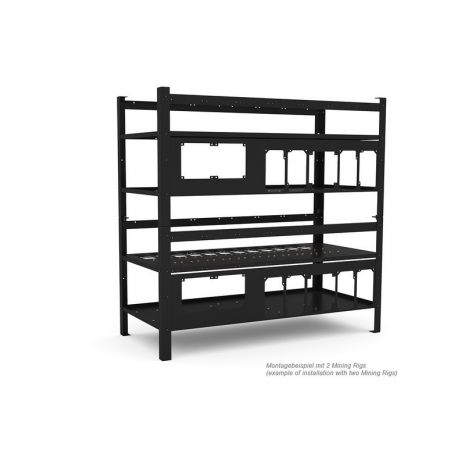 If you want to use more than 12 graphics cards for your mining project, you can easily stack a second and even a third case on top of each other. These can be screwed together via the feet to ensure a secure footing. This function means you can run up to 36 graphics cards in a safe and stable way. Thanks to the open design, the individual components can also be easily exchanged if necessary.