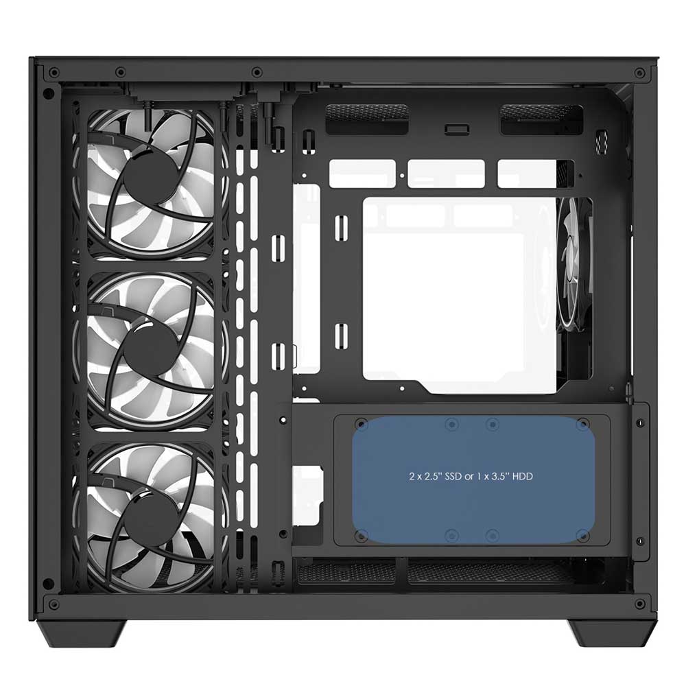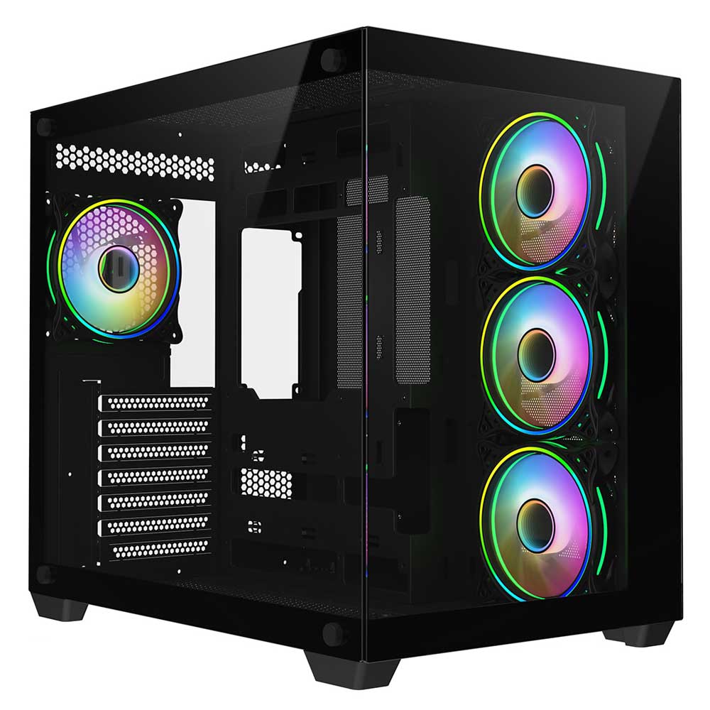 - Panoramic View - The CiT Vision is an excellent case to showcase your building skills. With a unique and stylish design with dual tempered glass panelling on the front and side of the chassis allows you to have an unobstructed view of your gaming hardware letting you construct a gaming PC that looks good from every angle.
