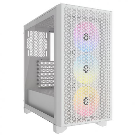 The CORSAIR 3000D RGB AIRFLOW presents a mid-tower ATX chassis with an efficient high-airflow design, including three prefitted CORSAIR AR120 RGB fans that deliver outstanding cooling and vibrant lighting effects. The addition of a tempered glass side panel turns your computer into a showcase of cutting-edge PC technology. An intelligently arranged interior has room for up to 8x 120mm or 4x 140mm case fans. With space for radiators up to 360mm, support for 3.5" and 2.5" storage drives, and a four-slot graphics card up to 360mm in length, you can create a high-end, powerful system. The front I/O panel features two USB 3.2 Type A ports and a Mic/Audio Jack for convenience.