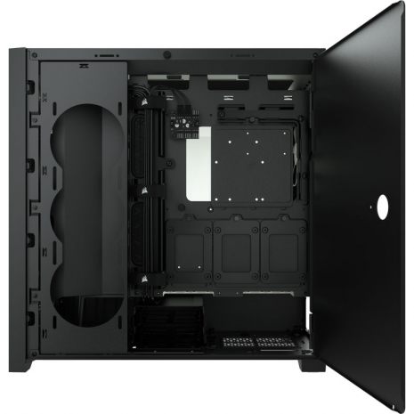- CORSAIR RAPIDROUTE CABLE MANAGEMENT - Quickly and easily route your major cables through a single hidden channel, with a roomy 25mm of space behind the motherboard for all of your cables, easily concealed by a hinged steel door.