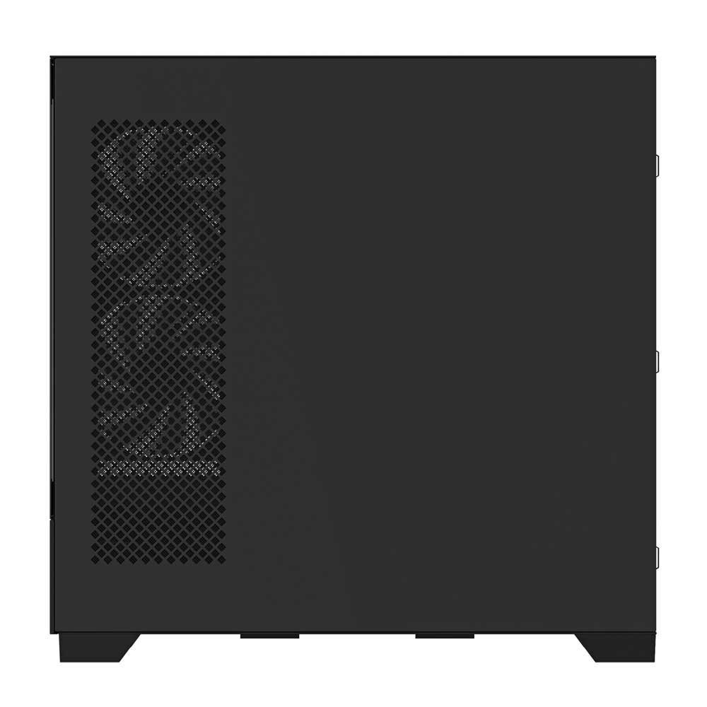 Large ventilation cutouts on the bottom and right panels maximize airflow, ensuring efficient fan-powered cooling to keep your system stable and performing at its peak.