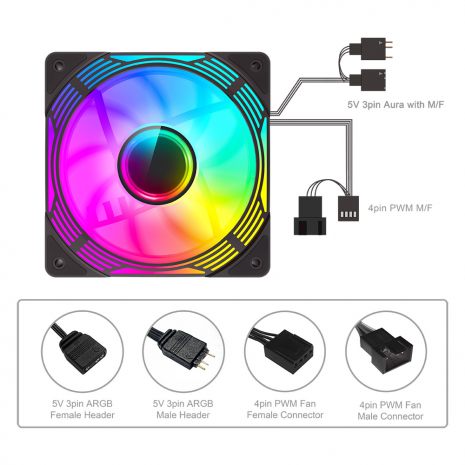 *Fan Powered Via 4pin Connector PWM *LED Powered Via 3pin ARGB - Both PWM and ARGB have pass-through to chain multiple fans |