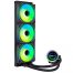 The Galahad II Trinity series’ pump cap has three interchangeable designs, each with a unique look and two rings of colors that can be individually controlled with different lighting effects.