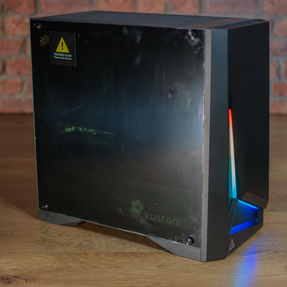 System is fitted in an Antec case with reasonable cooling (the case included one fan, we've added another to ensure decent airflow), and there is colour selectable lighting on the front panel.
