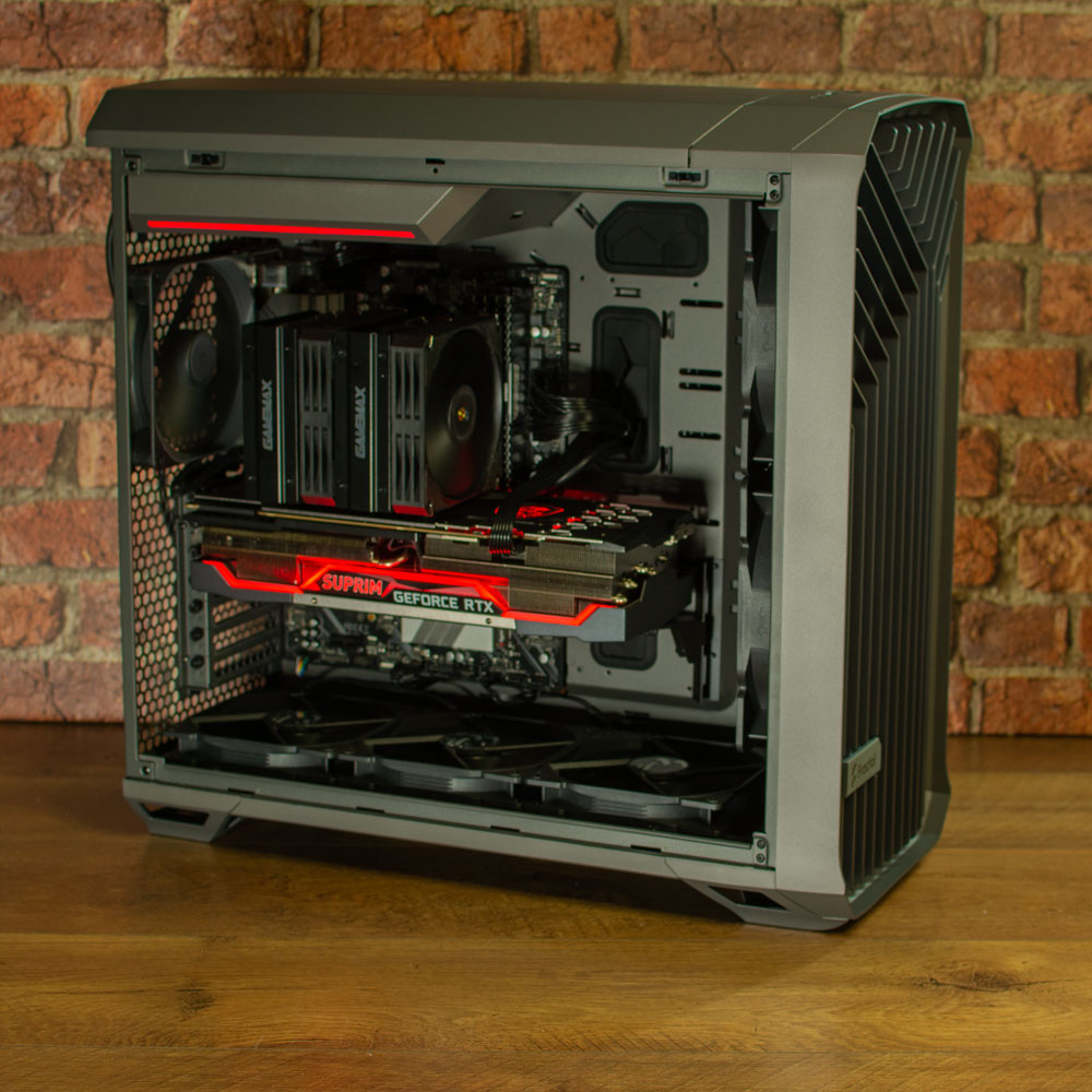 Housing all these goodies is a generously sized (in other words, big) Fractal Torrent case which provides one of the best cooling setups in a PC case with twin 180mm fans upfront, 3 x 140mm fans on the base to cool the graphics card and we've added an extra fan at the rear to keep things moving. Paired with a Game Max Twin fan air cooler on the processor, this keeps this high performance system at manageable temperatures and not making too much of racket. The oversized cooler on the graphics card keeping this powerful model within a safe temperature window too.