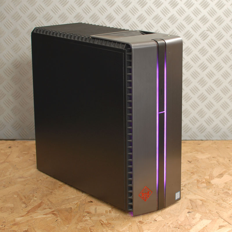 This is a compact HP desktop tower, and is fitted with new disk drives (256GB Solid State Disk and 1TB hard disk drive). It looks a bit smarter than the HP office syustems and has a RGB light strip section on the front panel.