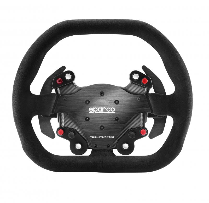 1:1 scale replica of the highly-coveted Sparco P310 wheel, officially licensed by Sparco. 12.2 inches/31 cm in diameter, wrapped in black suede. Carbon-style button supports, inspired by real race cars.