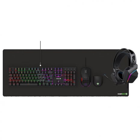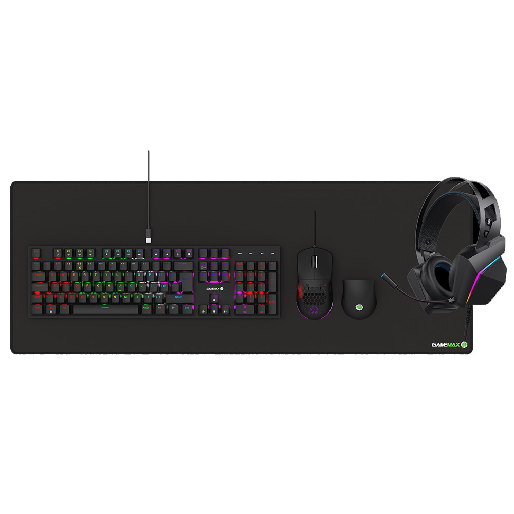GameMax have completed the peripheral range by adding the Pulse Mech 4 in 1 kit. Everything you need, all in one bundle. Built for elite gamers looking to refresh and complete your set up, the Pulse Mech 4 in 1 gaming bundle has all you need with a stunning mechanical illuminated keyboard and mouse, stylish headset and gaming mouse mat, your ready, for the ultimate e-sports gaming bundle for PC.
