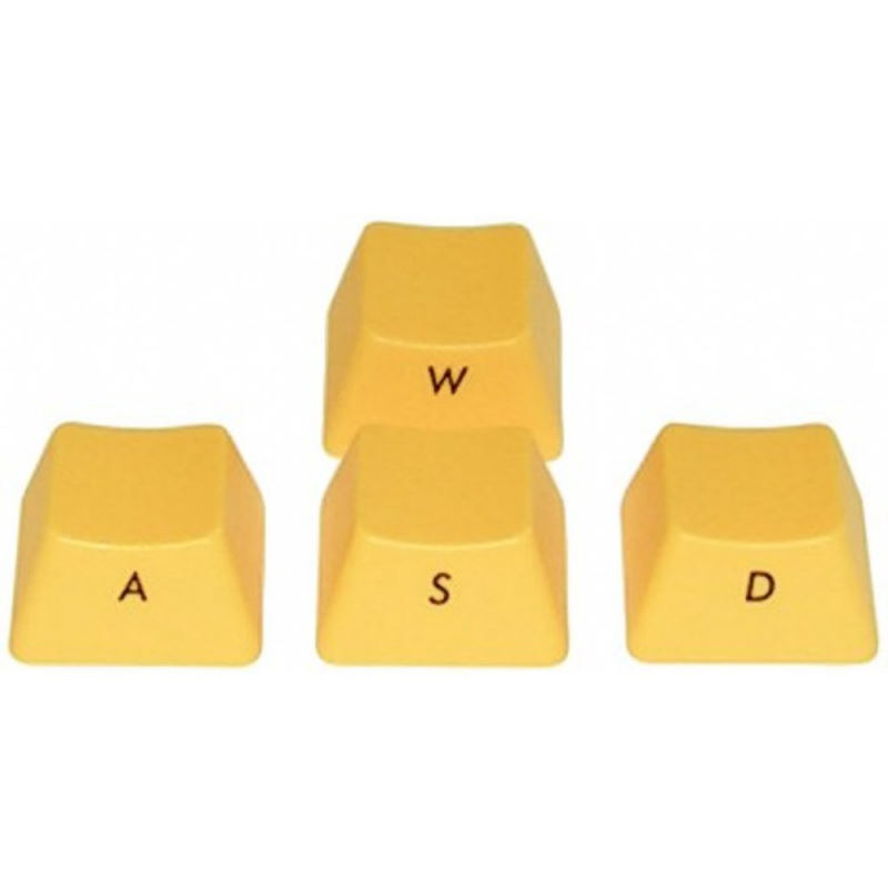 Replacement yellow 'W', 'A', 'S' and 'D' keys designed for Filco Majestouch and Tenkeyless keyboards with Cherry switches, these keys will however fit all Cherry MX switches (they are slightly taller than the standard keys on a G80-3000 but have the same slope/angle to the key tops.)