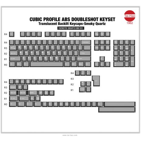 Tai-Hao Cubic Profile ABS Translucent Smoky Quartz 152 Keycap Set