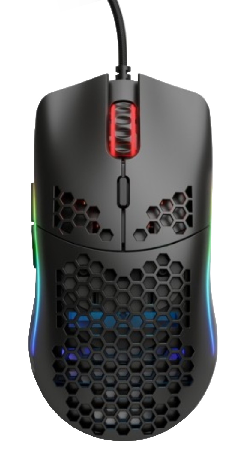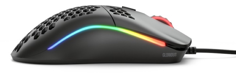 The Glorious Model O Gaming Mouse is a gaming mouse with a premium quality optical sensor made by Pixart and that includes six buttons. The sensor offers remarkable tracking precision at up to 12 000 DPI. What is particularly striking however, is the honeycomb design used across the surface of this professional gaming mouse. This makes for a marked reduction in the total weight of the mouse to just 59g. Underneath this, users will notice the stylish RGB lighting, which helps to highlight the inner workings of the mouse. For increased long-term durability, the Glorious Model O Gaming Mouse includes extra durable Omron switches. Of course, the mouse also stands out from the competition in several other ways, not least the fact that it can track at accelerations of up to 50G. In comparison to the model O, the O- offers smaller dimensions and a lighter total weight.